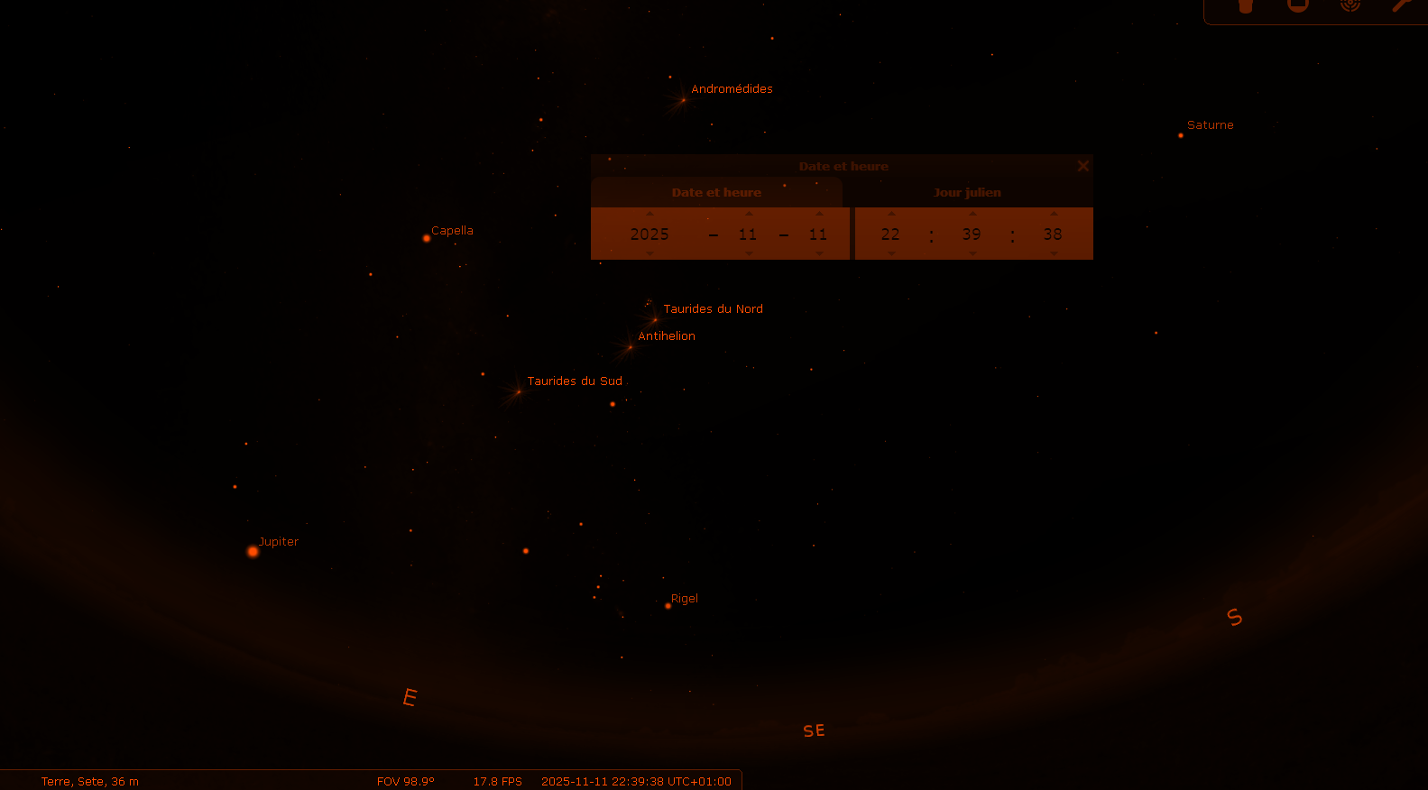 En secciones anteriores, solía usar capturas de pantalla para recrear el cielo de una época específica, pasada o futura. Gracias a Stellarium, puedes hacer cualquier cosa.