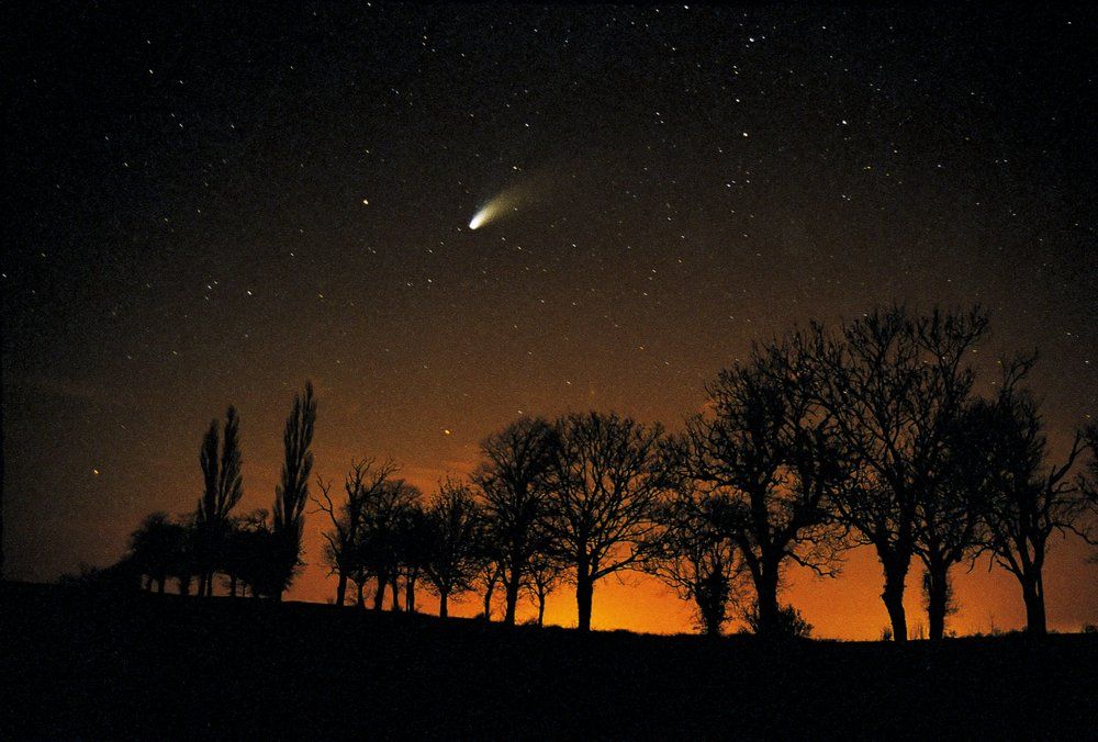 In diesem etwa zur gleichen Zeit, im Oktober 1996, hatte ich das unglaubliche Glück, von der Entdeckung eines Kometen zu erfahren. Er war sehr weit entfernt und hatte seinen Schweif noch nicht entfaltet. Er war nur ein unscheinbarer Fleck. Den ganzen Winter über hielten einige Stammgäste und ich Ausschau nach dem Kometen. Im April 1997 war er mit bloßem Auge sichtbar, ein prächtiger Anblick am Himmel. Es war Hale-Bopp, der schönste Komet der letzten Jahrzehnte.