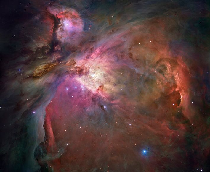 Con un simple par de binoculares, se puede comenzar a admirar en su justo valor esta maravillosa cuna estelar, situada a aproximadamente 1,500 años luz de nosotros, conocida como la "gran nebulosa de Orión". Los astrónomos hablan de una "maternidad de estrellas".